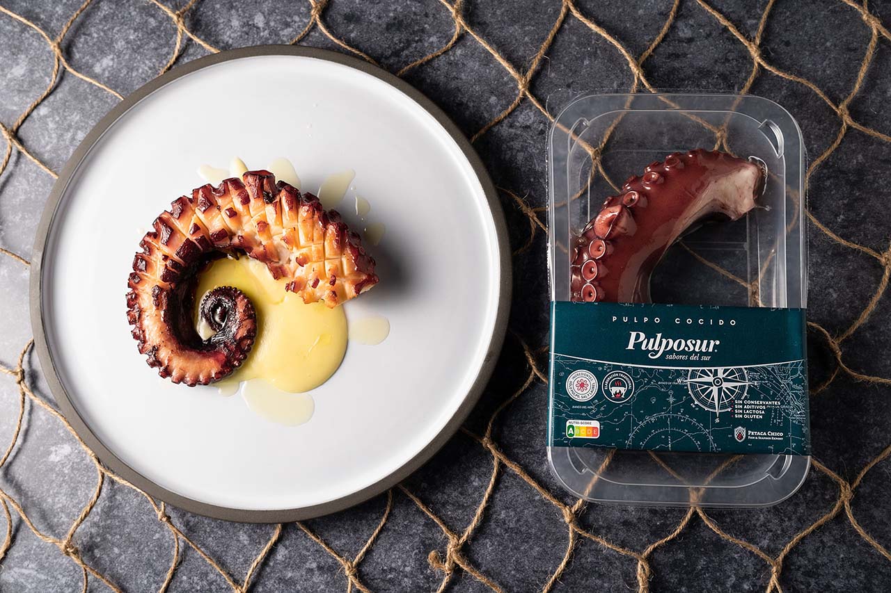 Esta marca, alojada en sus instalaciones de Cádiz, se centra en la preparación del mejor pulpo cocido, especie que captura en los caladeros de Dakhla y Mauritania.